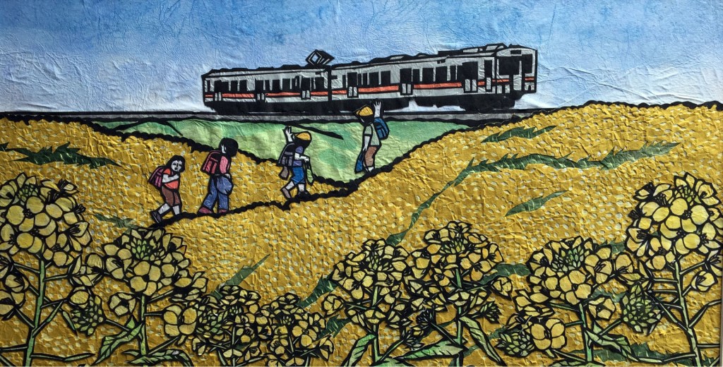 菜の花 学校に通じる道で、みごとな菜の花畑を見かけました。右も左も真っ黄色の菜の花で、黄色く染まっています。近づいて花に顔を近づけると、ぷーんと香る油っぽい匂い。その香りと共に子ども達の笑い声が聞こえてきました。顔を上げると、学校帰りの一年生の頭が菜の花畑の向こうに見え隠れしています。どんな楽しい話をしているのでしょうか。詩の一節が思い浮かびました。 いちめんのなのはな いちめんのなのはな いちめんのなのはな いちめんのなのはな いちめんのなのはな いちめんのなのはな いちめんのなのはな かすかなるむぎぶえ いちめんのなのはな 続きを読む: IMG_6599