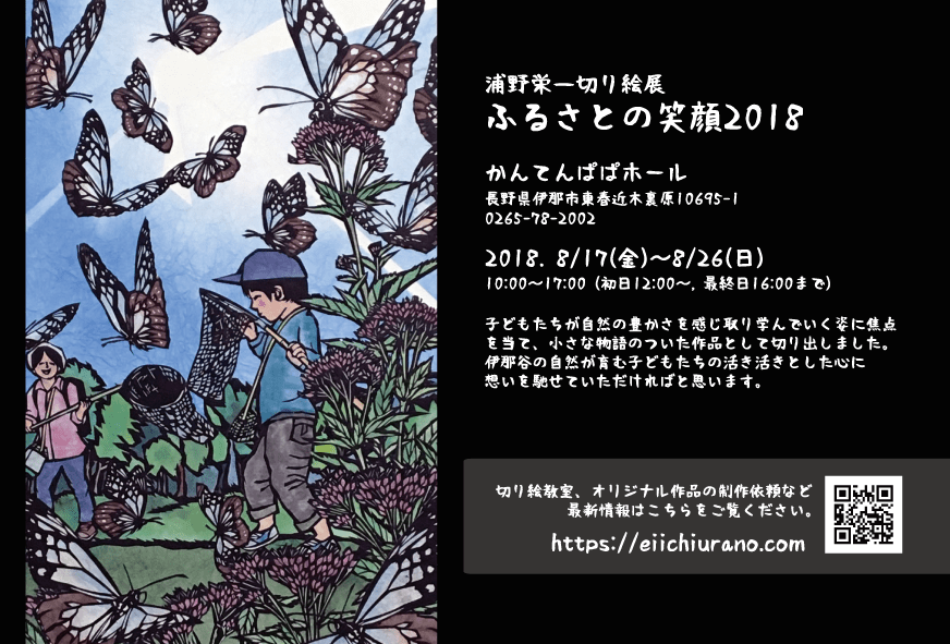 伊那谷出身の切り絵作家 浦野栄一の公式ホームページです。子どもと自然をキーワードに、切り絵教室、展覧会、オリジナル制作などを行っています。