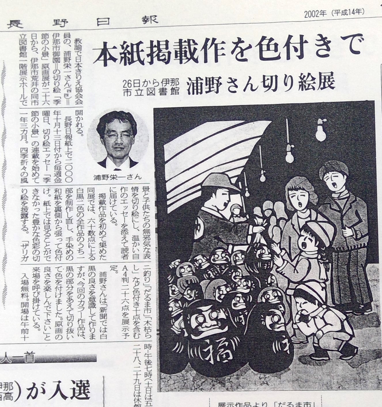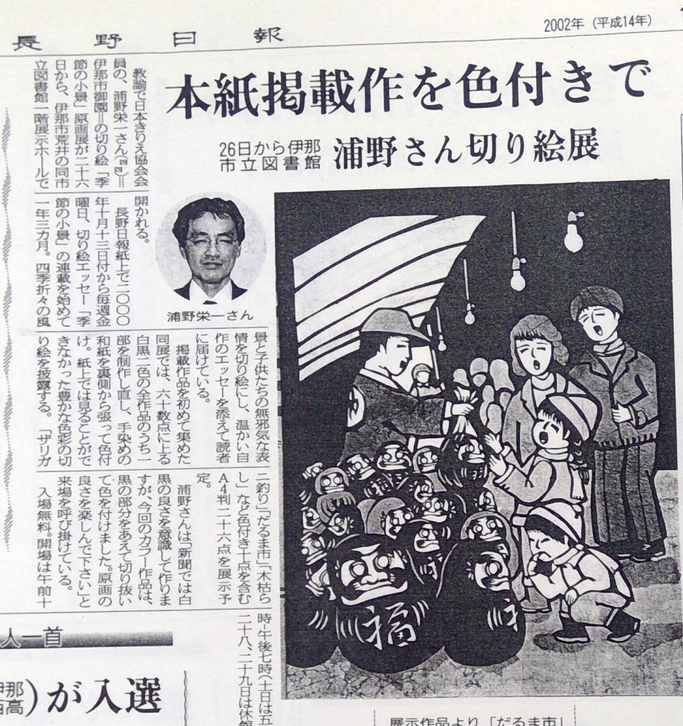 伊那谷出身の切り絵作家 浦野栄一の公式ホームページです。子どもと自然をキーワードに、切り絵教室、展覧会、オリジナル制作などを行っています。
