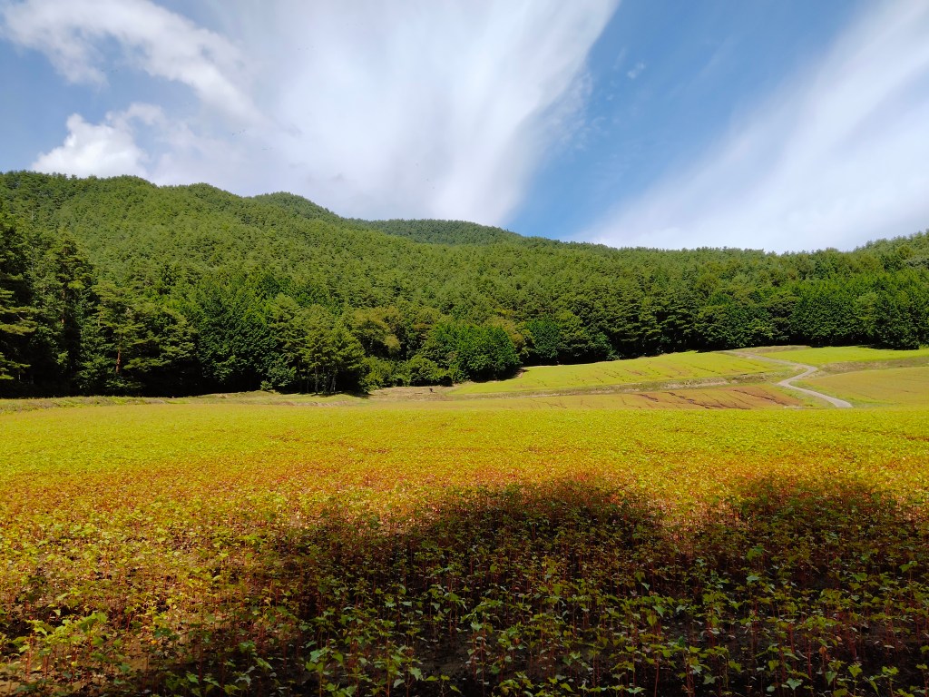 昨年はコロナ禍で蕎麦は栽培されなかったと聞き、今年はどうだろうかと心配していました。それでも取材をかねて8月に訪ねてみたところ、蕎麦の姿は見えませんでしたが、畑がきれいに耕されていました。静かな山間の畑に吹く風もさわやかで、しばらく暑さを忘れさせてくれました。