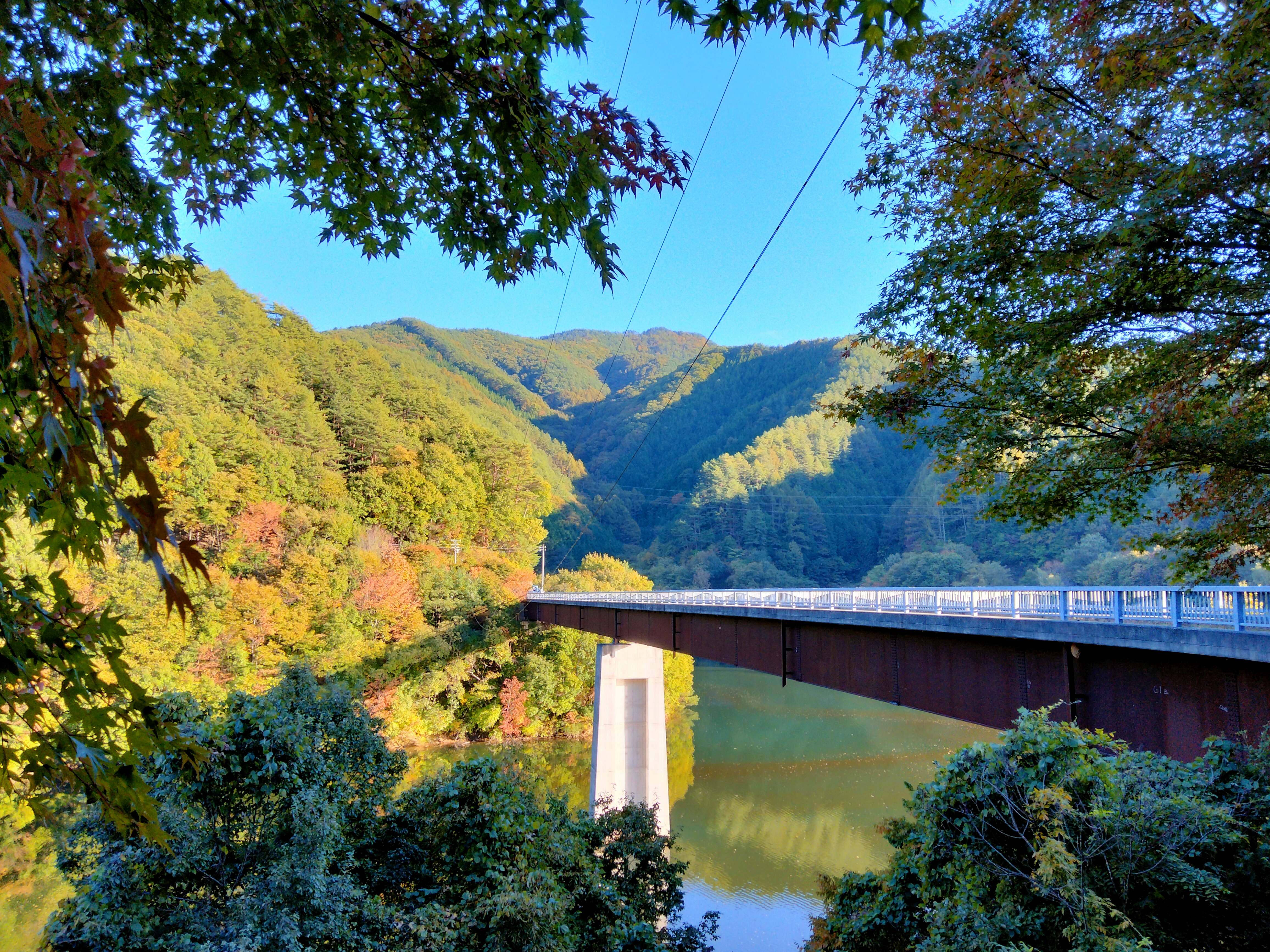 箕輪ダムは1992年に上伊那地域の水源として作られました。当時このダムの底となった場所には集落があり、人々が住んでいたそうです。先祖からの土地を手放すには相当な覚悟と決断が必要でした。それでも地域のためになるならとこの地を離れると決め、将来にわたってこの地が愛されるように願って集落の方がもみじの苗木を寄付されました。元々もみじの美しいところでもあり、この地は一万本ものもみじが息づく名勝地となって多くの方に親しまれるようになりました。