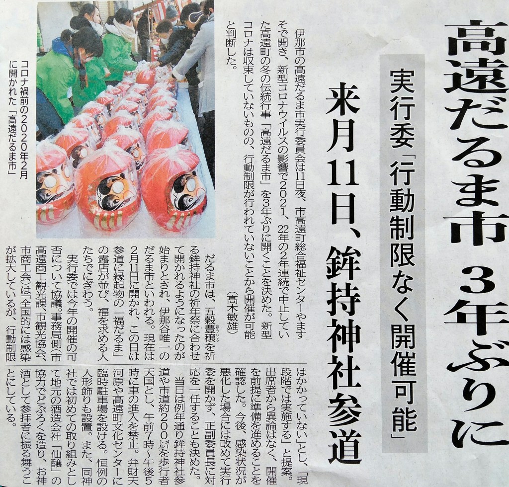 伊那市高遠ではだるま市が毎年行われていたのですが、ここ2年はコロナ禍により中止となり、今年は久しぶりの開催となりました。