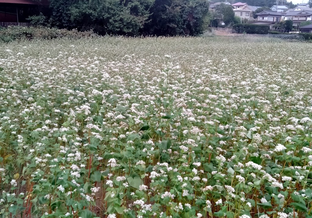 白く可憐な蕎麦の花。一輪は小さくとも一斉に花開くと蕎麦畑を白く染め上げ、そよ風に揺られている光景は非常に美しいものです。