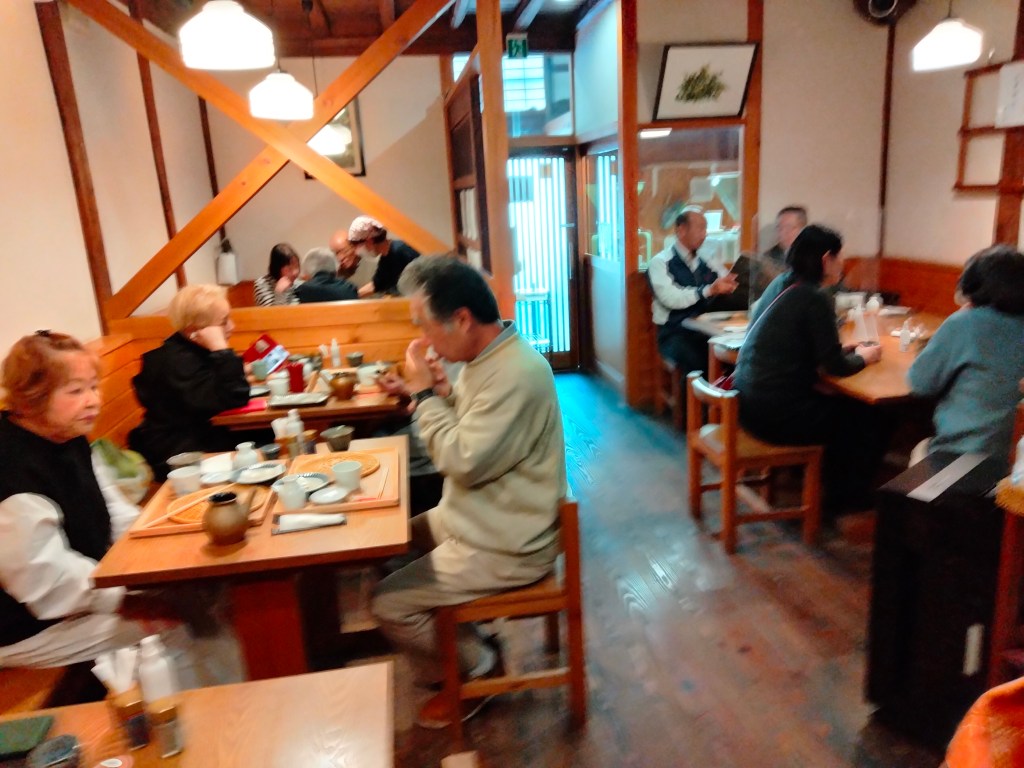 横の席のご夫婦から声をかけられました。娘さんからここのそばがとてもおいしかったと聞いて、お隣りの岐阜県から信州の秋の紅葉とそばを目当てに3時間かけて来られたとのこと。