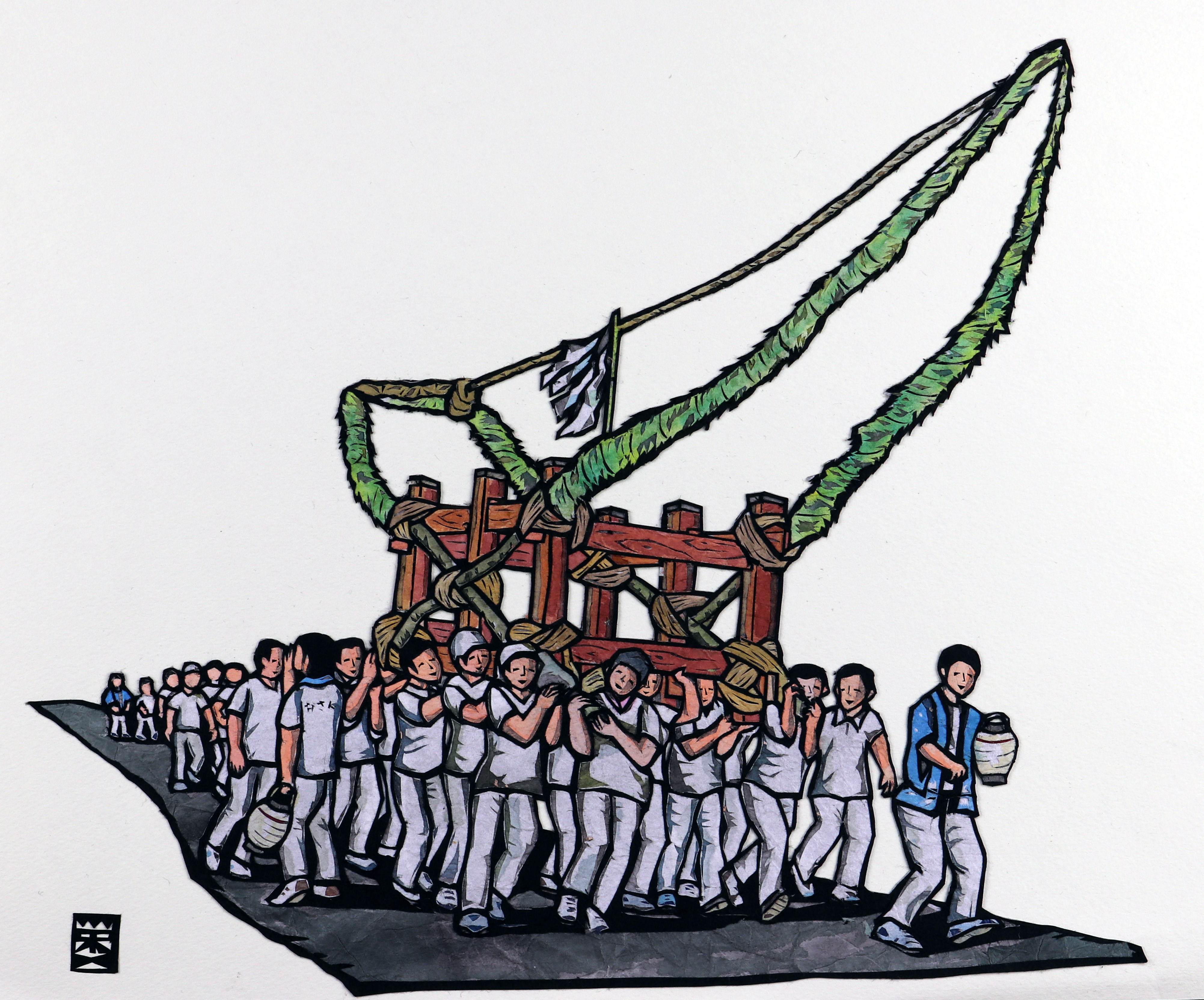 箕輪町教育委員会からの依頼を受け、箕輪町の文化を表現する冊子の表紙と扉絵を制作することになりました。私にとってはとても貴重な経験となりました。地元の文化に触れるために現地を訪れ、話を聞き、写真や資料を見せてもらいました。その過程で、箕輪町の伝統文化、お祭り、文化財に関する深い意味や、これまで関わってきた先人たちの思いを感じることができました。