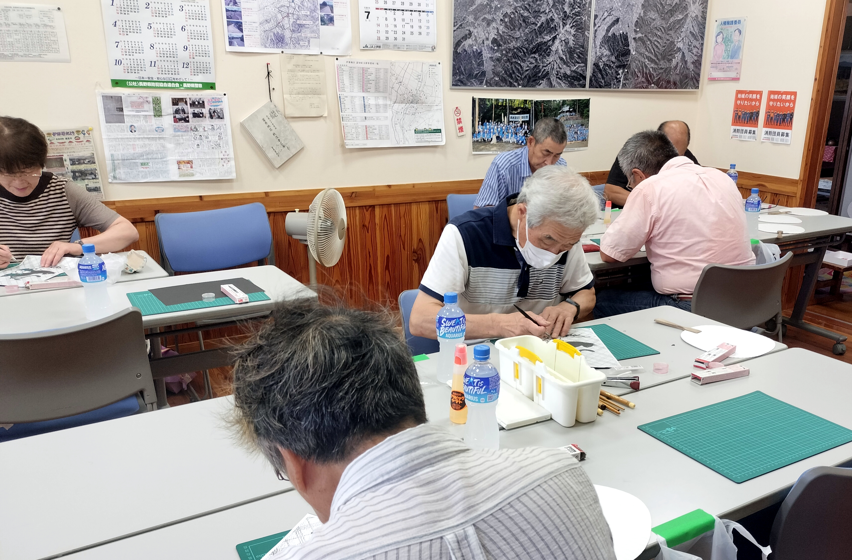 地区の公民館からの依頼で、今年も切り絵教室の講師を務めさせていただきました。今回で3年目となるこの講習会は、地域の皆さんの温かい雰囲気に包まれた手作りの教室です。公民館の役員の方々が会場や用具の準備を協力して進めてくださり、地域の結束力を感じることができます。