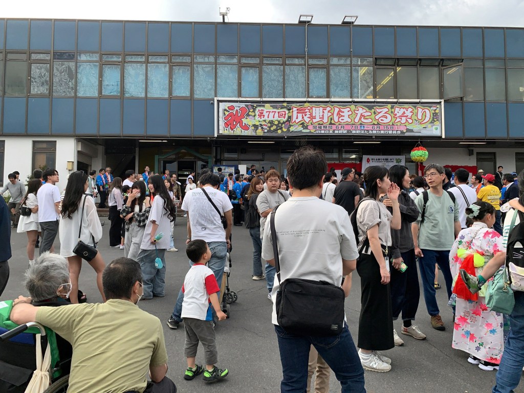 日が暮れてから、駅を後に松尾峡まで歩きました。家族連れ、特に子どもたちがたくさん訪れており、闇夜に光るホタルの姿を見つけるたびに、歓声が上がっていました。その幻想的な光景はまさに感動的で、夏の訪れを実感させてくれました。美しいホタルが舞う辰野の夜を満喫し、会場を後にしました。