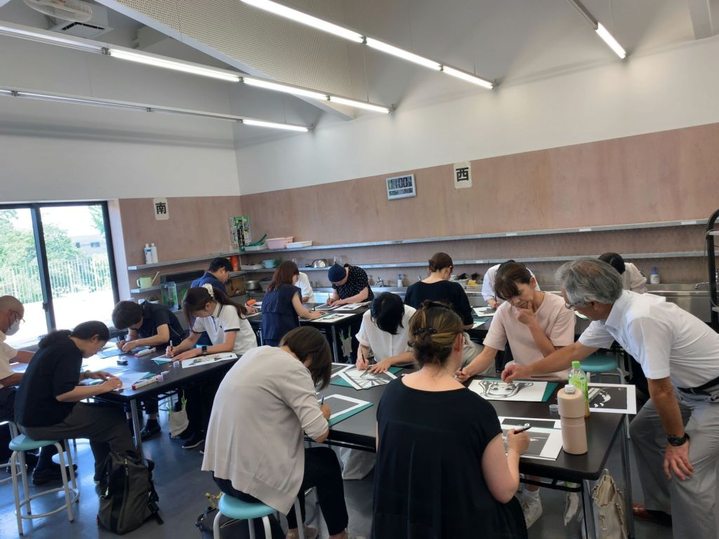 夏休み最終日となる大変暑い8月20日に、伊那東小学校にて、先生方のための切り絵講習会を実施しました。15名ほどの先生方が参加されました。