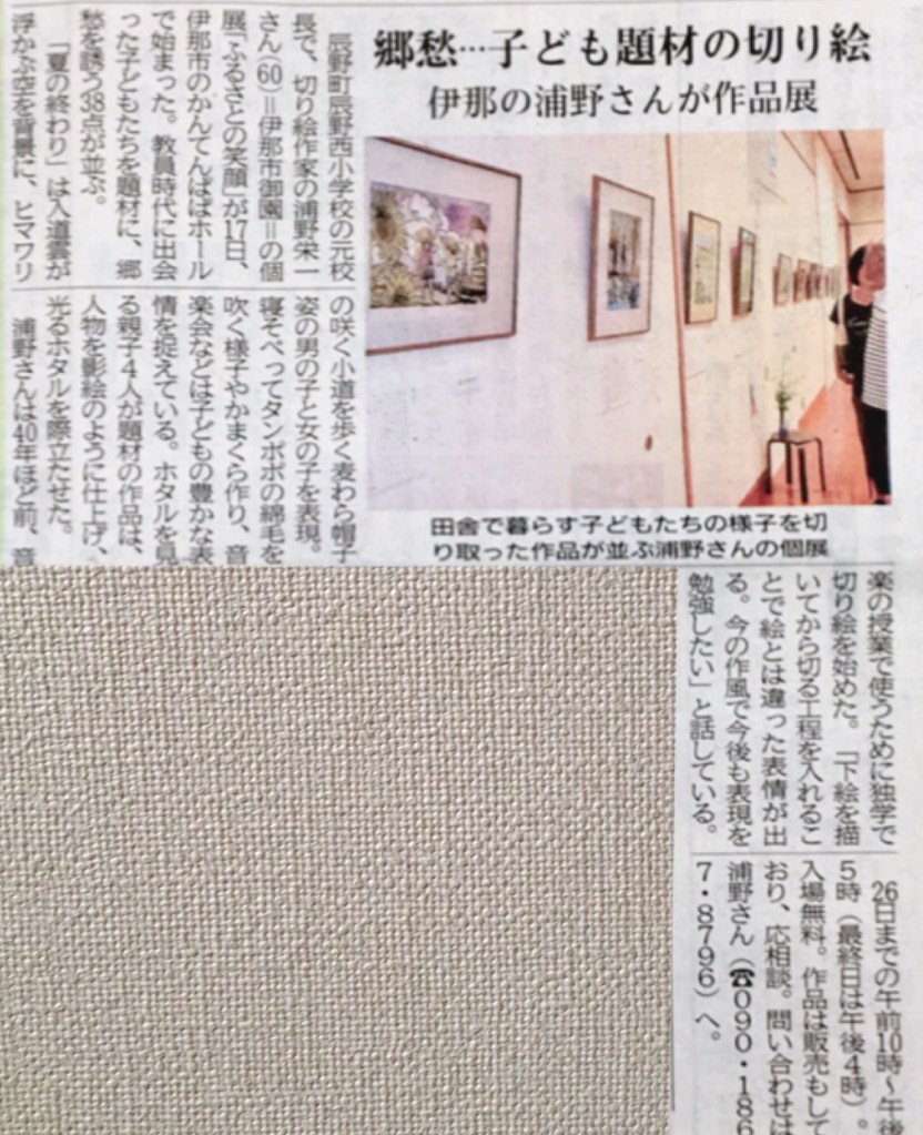 伊那谷出身の切り絵作家 浦野栄一の公式ホームページです。子どもと自然をキーワードに、切り絵教室、展覧会、オリジナル制作などを行っています。